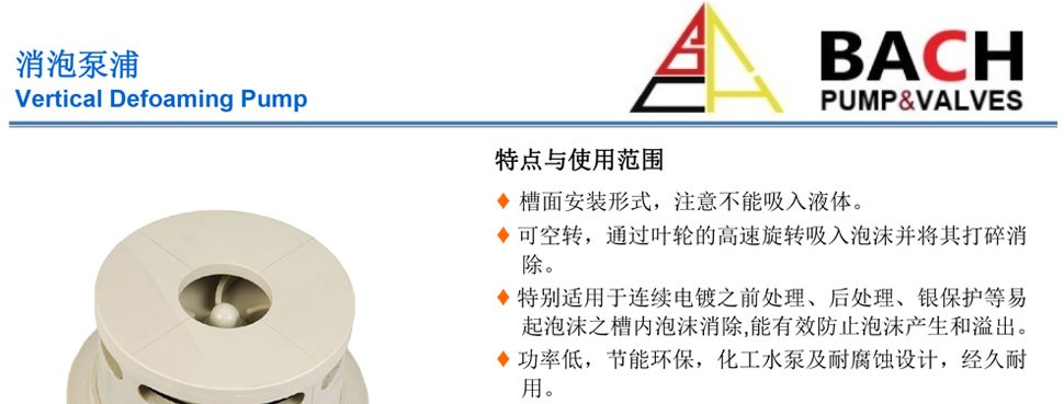 · 產品別名:消泡泵,耐腐蝕消泡泵,立式消泡泵等。