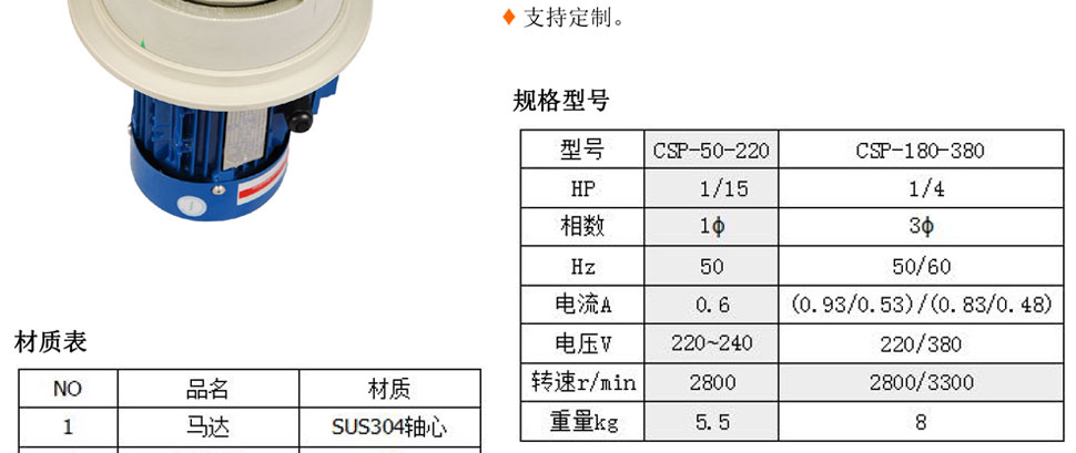 · 產品規格:(50/60HZ)