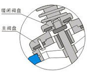 2.采用主副密封結構,主密封閥隨著介質的壓力大小自動打開或關閉。副密封閥盤受到控制室介質的影響,隨水錘峰值到達時間的長短自行關閉,從而消除水擊現象。